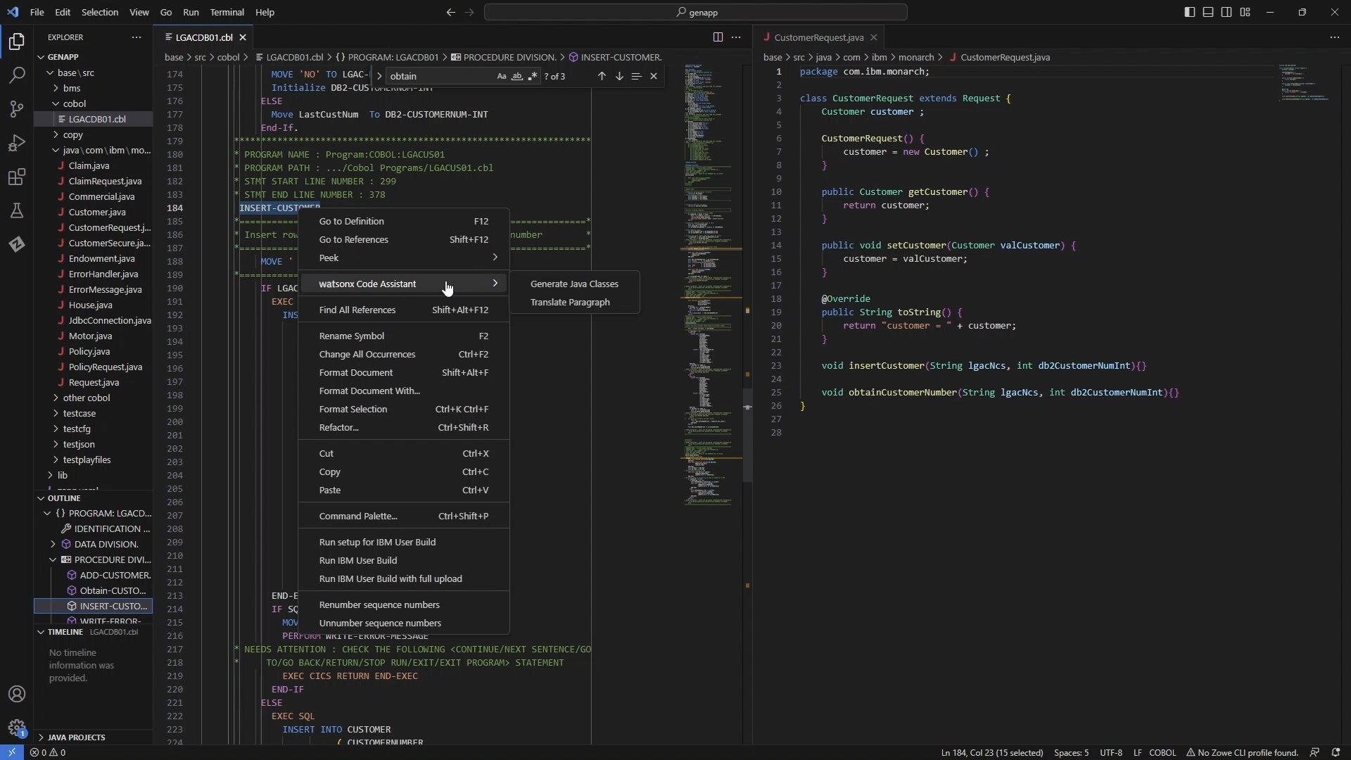 ▲IBM Z용 왓슨x 코드 어시스턴트 데모 화면(사진:IBM)