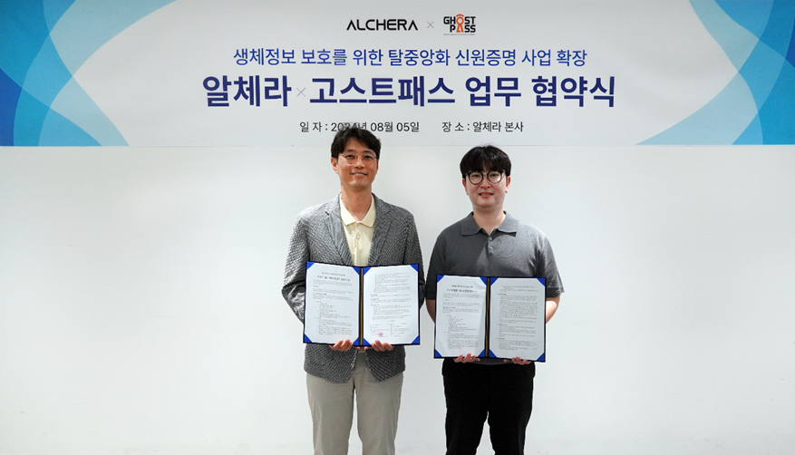 영상인식 인공지능(AI) 전문기업 알체라가 분산형 생체인증 솔루션 기업 고스트패스와 업무협약을 체결했다고 6일 밝혔다.