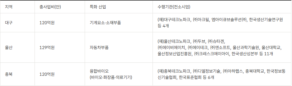 대구 120억·울산 129억·충북 120억 지원
