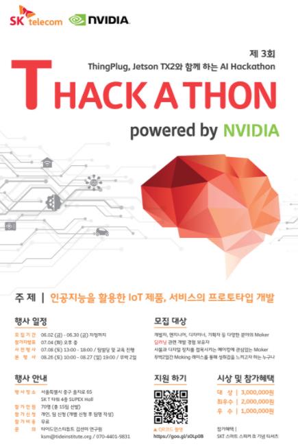 SK텔레콤이 엔비디아와 함께 국내 인공지능 생태계 활성화를 위해 오는 8월 26~27일 ‘제 3회 T해카톤(Hack-A-Thon)’ 대회를 개최한다.