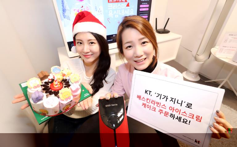 KT는 15일까지 기가지니에 연동된 해피오더 서비스를 통해 배스킨라빈스 아이스크림 케이크 사전 예약 서비스를 우선 제공한다. 가령, “지니야 배스킨라빈스 아이스크림케이크 주문해줘”라고 말하면 모바일에 설치된 기가지니 앱으로 푸쉬형 알림 메시지가 발송된다. 알림 메시지를 클릭하면 해피포인트 앱이 구동되고 기가지니 고객을 위한 크리스마스 아이스크림 케이크 예약 페이지로 연결된다. 사전 예약한 아이스크림은 19일에서 24일까지 매장에서 수령 가능하다.