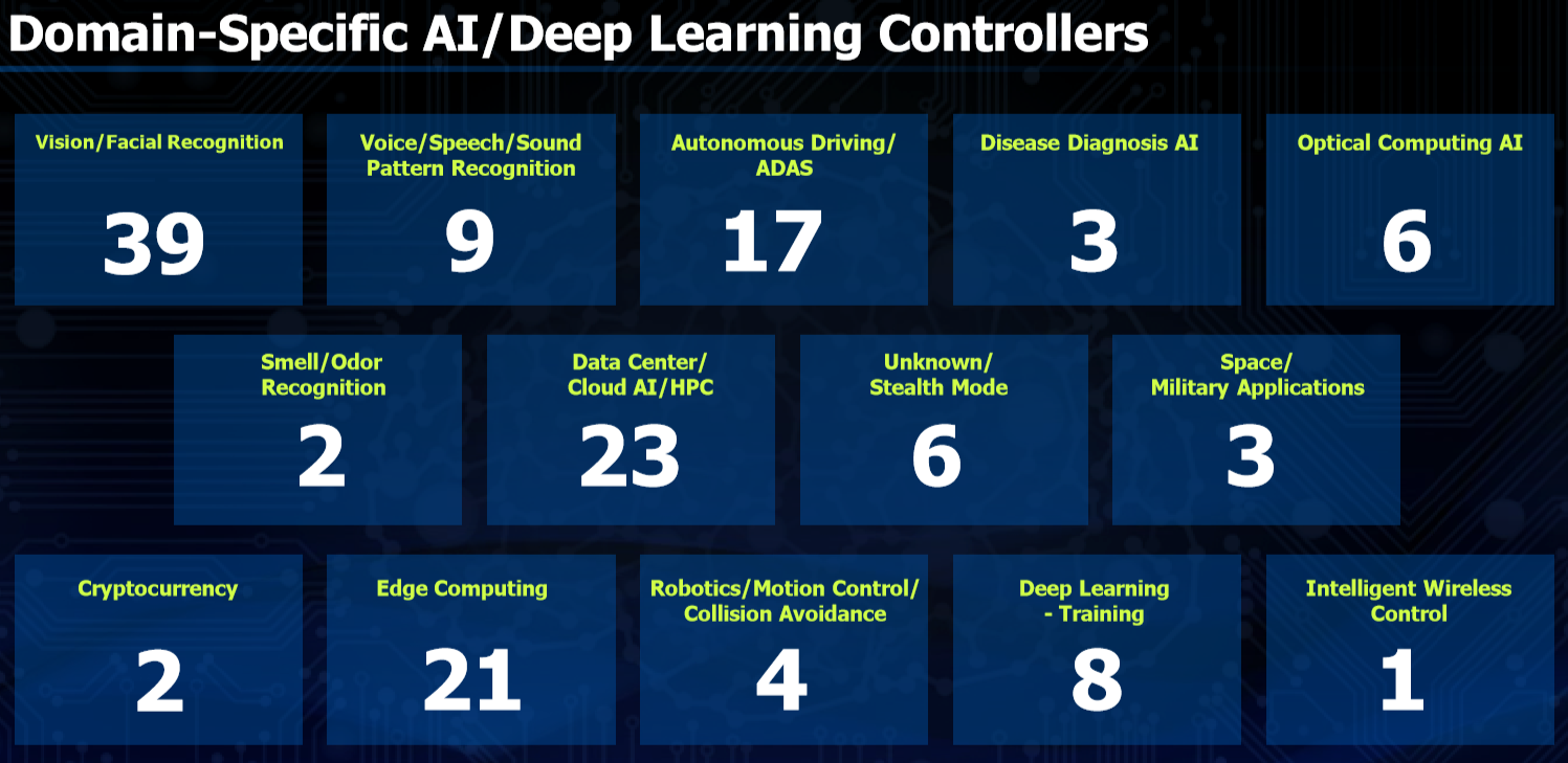 클라우드와 고성능 컴퓨팅을 활용한 데이터 분석에도 사용되고 있다. 또한, 자율주행 자동차도 많은 스타트업들이 칩 설계를 하고 있다. 냄새 인식 쪽에도 많은 투자가 이루어지고 있다. 덧붙여 사람의 다양한 감정 변화에 맞춰 컴퓨터가 대응하는 분야도 개발 진행 중이다.