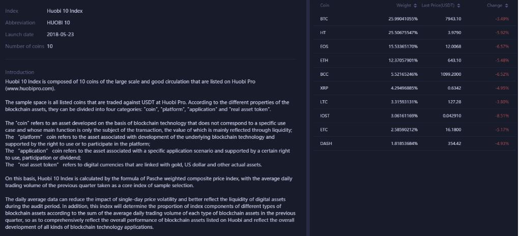 후오비는 이날 공지사항을 통해 ‘대표적인 10종의 암호화폐 종목을 기반으로 하는 인덱스 지수 <<후오비 10 인덱스>>를 출시했다’고 밝혔다.