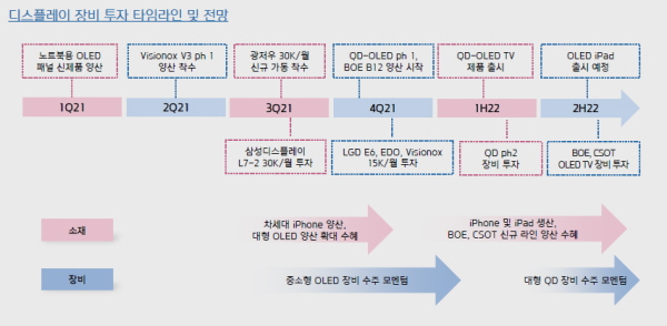 ▲디스플레이 장비 투자 타임라인 및 전망(자료 : 키움증권)