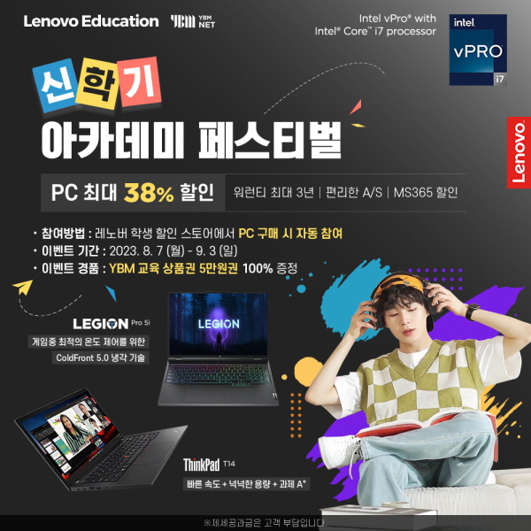 한국레노버는 신학기를 맞이해 YBMNET과 손잡고 아카데미 페스티벌을 9월3일까지 진행한다고 밝혔다.