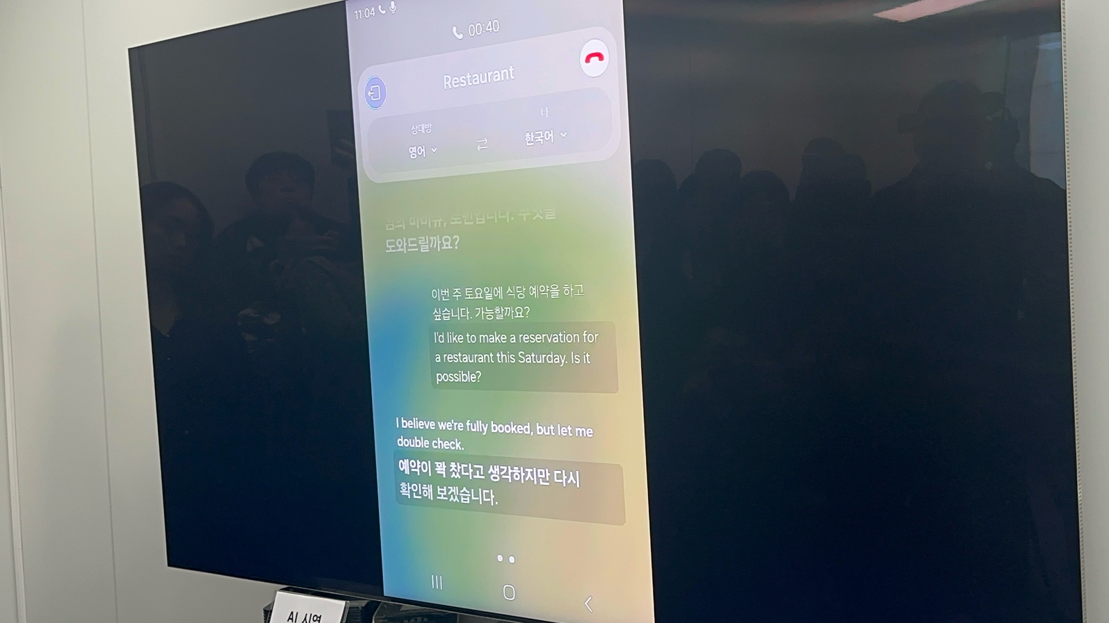 이날 시연자는 직접 영어로 미국 레스토랑에 예약하는 모습을 시연했다. 전화 발신 화면에서 실시간 통역 버튼을 누르면, 통화 번역이 시작된다는 안내가 먼저 나간다. 한국어로 대화를 하면 영어로, 상대방의 영어 문장을 바로 한국어로 번역해준다. 번역 언어 간 지연 시간은 3초 정도 소요됐지만, 정확성은 높은 편이었다. 번역 언어는 총 13개를 지원하며, 통역 앱으로 오프라인에서도 통역기능은 사용 가능하다.