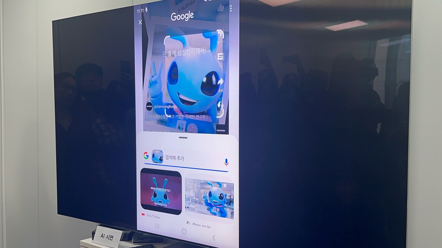 웹사이트의 아무 이미지를 실행하던 중, 하단의 홈버튼을 길게 누르면 서치 기능을 실행하며 브라우저를 열 수 있다. 이미지에서 궁금한 부분에 동그라미, 또는 네모 모양을 그리면 생성형 AI가 검색을 해준다.