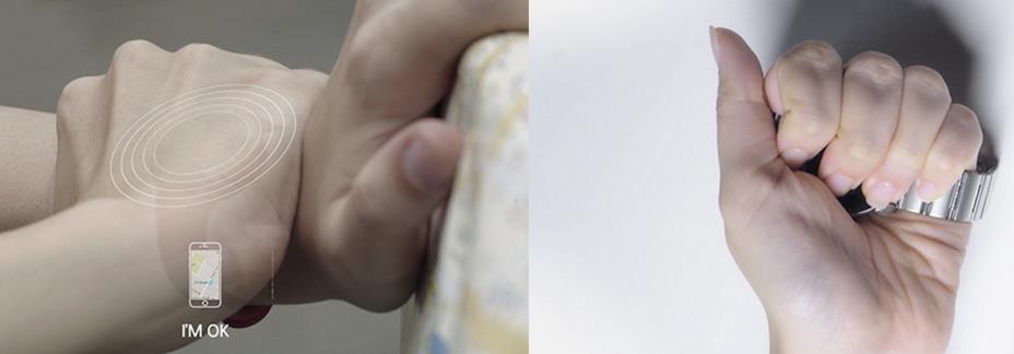 ▲‘랑(RANG)’ 스마트워치는 손으로 쥐기만 해도 자신의 위치 정보를 전송할 수 있는 안전기능을 탑재했다.