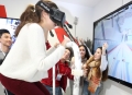 '평창의 날' 행사에 참여한 토마스 바흐 IOC 위원장이 KT 부스에서 VR 스키점프를 체험하고 있다.
