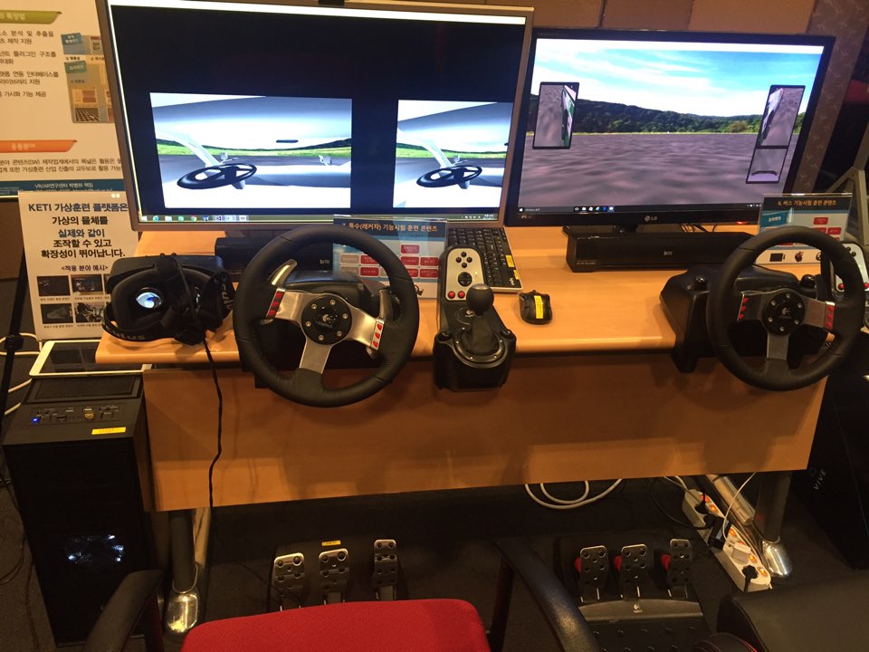 가상현실 환경에서 훈련하는 시공간 제약을 극복한 가상훈련 기술도 공개됐다. 평범한 차량 게임 VR기기로 보였지만, 기술을 설명하던 연구원은 “차량 운전뿐만 아니라 비행훈련, 스포츠 가상훈련, 항공우주사업부 등에서 쓰일 수 있는 콘텐츠를 제작하는 ‘플랫폼’을 개발했다”며 “어려운 기술 개발을 비교적 단순하게 했다. 플랫폼을 제공할 수도 있고, 필요에 따라 제작하기도 한다.”고 했다. 이는 2013년부터 진행한 산업 과제로, 현재 과제 검증을 위해 항공 우주사업부와 배포 버전 제작 단계다. 실용성이 인정되면 자격증 취득을 위한 교육에 적극 활용될 것으로 기대된다.
