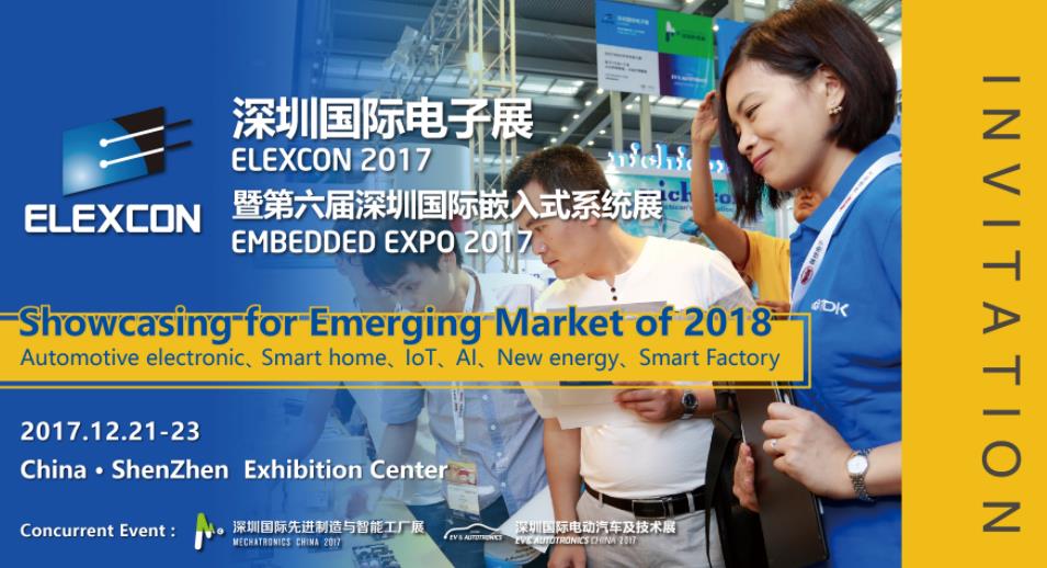 일렉스콘 2017은 오는 2017년 12월 21일부터 23일까지 심천의 컨벤션 및 전시 센터에서 개최될 예정이며, 약 500여개의 전시업체와 5만 여명의 업계 전문가들이 중국의 국제 전자 제조센터에 모일 것으로 예상되고 있다. 현재 온라인과 위쳇(WeChat)에서 사전 등록이 진행 중이다.