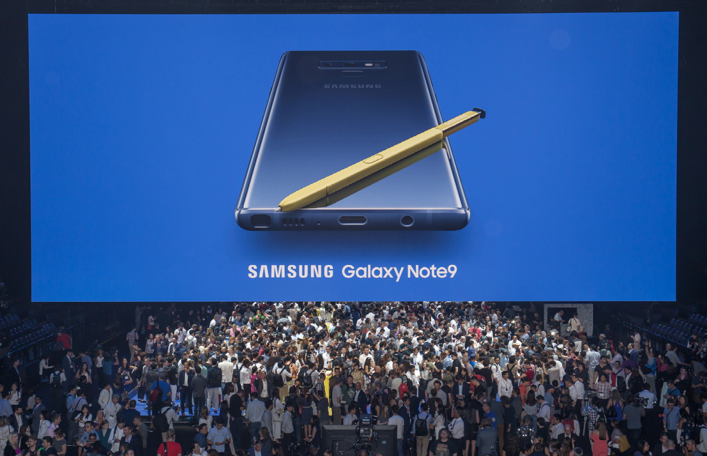 삼성전자가 9일(현지시간) 미국 뉴욕 바클레이스센터에서 미디어와 파트너 4,000여 명이 참석한 가운데 자사의 최신 스마트폰 '갤럭시 노트9'을 공개했다.
