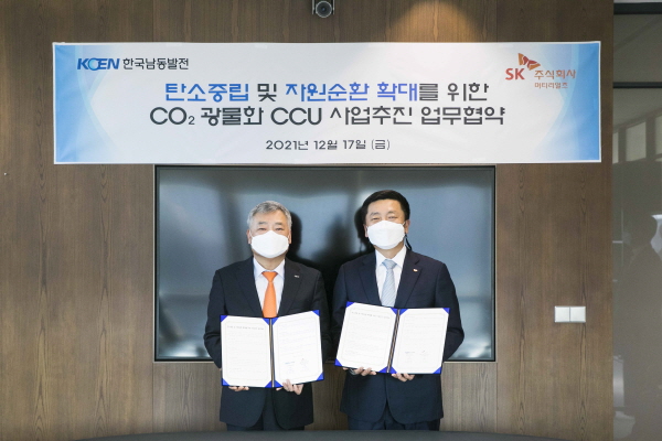 SK㈜ 머티리얼즈(사장 이용욱)는 17일 서울 종로구 그랑서울에서 한국남동발전과 함께 ‘탄소중립과 자원순환을 위한 사업추진’ 업무협약을 체결했다.