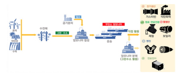 ▲탄소배출이 없는 암모니아의 생산 및 활용