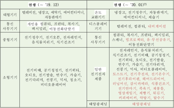 ▲전기·전자제품 재활용 의무대상 품목(2020년 기준 분류, 출처 : 한국환경산업기술원)