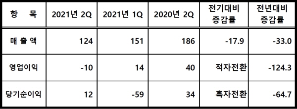 파크시스템스는 17일 2021년 2분기 실적을 공시했다. 이에 따르면 매출은 124억원으로 전년동기대비 33% 감소했고, 영업이익은 10억원의 적자를 기록했다. 당기순이익은 12억원으로 전년동기대비 64.7% 감소했다.
