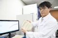 ▲전기연구원 하윤철 박사가 공침법을 활용해 세계 최초로 개발한 고체전해질을 살펴보고 있다.