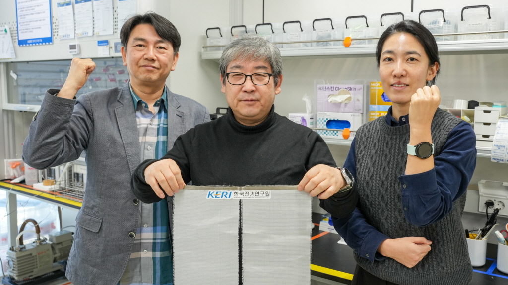 이에 KERI 이동윤 박사팀은 과거 옷감형 태양전지, 발열 의류 기술을 개발한 노하우를 활용해 ‘금속섬유천 면상 발열체’ 기술을 제시했다.