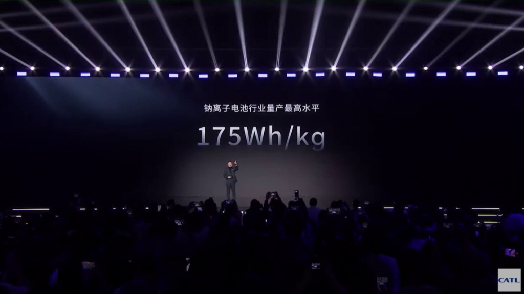▲CATL은 나트륨이온 배터리의 밀도를 175Wh/㎏까지 달성했다고 밝혔다.(사진 : CATL 유튜브영상)