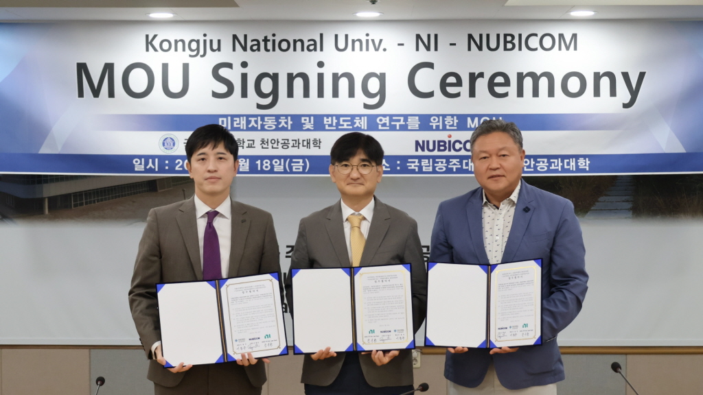 NI와 누비콤은 지난 18일 충남 천안시에 위치한 국립공주대학교 공과대학에서 국립공주대학교 천안공과대학(학장 이동주)과 산학연 협력 강화를 위한 업무협약(MOU)을 체결했다.