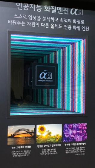 이 날 공개한 올레드 TV 주요 모델에는 LG전자가 독자 개발한 인공지능 화질엔진인 ‘알파9’과 구글 어시스턴트가 탑재됐다. 알파9은 영상을 분석해 4단계로 노이즈를 제거해준다. 1,2 단계에서 영상의 깨진 부분이나 잡티를 제거하고 3,4 단계에서 영상에 줄이 생기는 밴딩 노이즈나 색상의 뭉개짐을 완화한다.