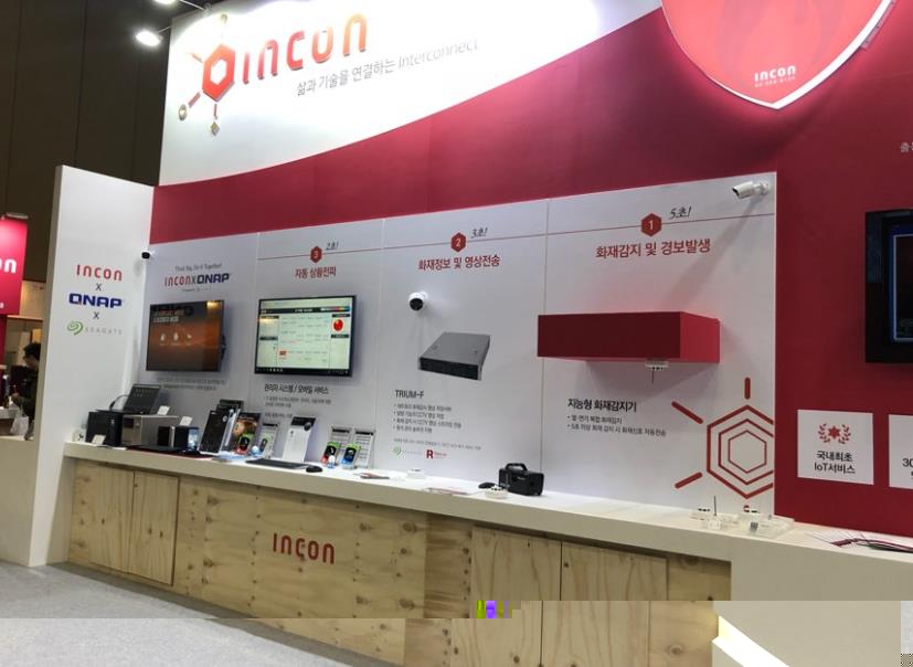 사건/사고 예방이나 추적 이외에도 재난 예방에도 지능형 시스템을 도입할 수 있다. 인콘은 지능형 화재감시 시스템(Fire Guard)를 소개했다. 화재 발생후 골든타임인 240초를 확보하기 위한 시스템으로 지능형 화재감지기에 5초 이상 발생한 화재 신호를 IoT 통신을 통해 관리자시스템과 모바일로 전송한다.