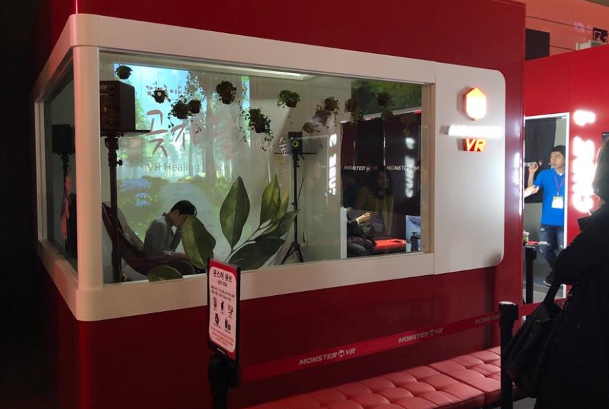 VR 콘텐츠 제작, 유통사인 서틴플로어는 ‘calm & immerse’와 ‘MATRIX’를 체험할 수 있게 했다. ‘calm & immerse’은 뇌파 분석과 같은 의학적 효과 검증을 통해 심리 안정 효과가 있는 VR 콘텐츠로 심리 치료가 필요한 환자나 스트레스에 시달리는 현대인에게 심리적 안정을 준다. ‘MATRIX’는 HMD의 6DOF를 이용한 VR 체험으로 물리적인 신체 이동을 통해 VR 공간 내의 문을 통과하는 몰입감 높은 순간이동을 경험할 수 있다.