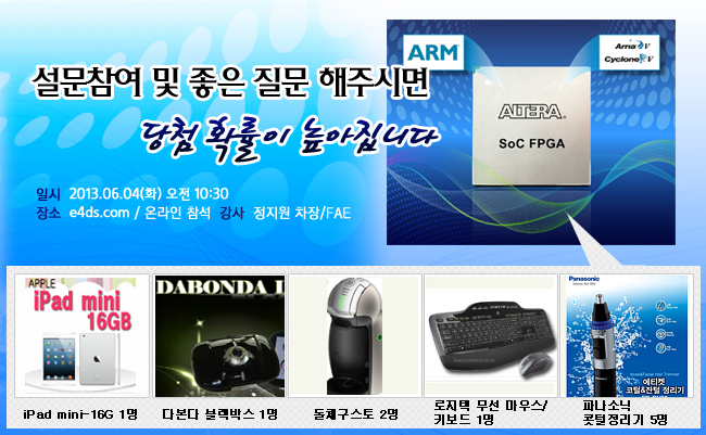 - SoC FPGA로 고성능 임베디드 시스템 설계를 쉽게 구축할수 있는 방법을 배우고자 세미나 신청합니다..