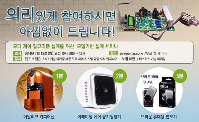 - 쿼드콥터 만드느라 보터제어해야하는데 유익한 세미나가 될꺼 같습니다.