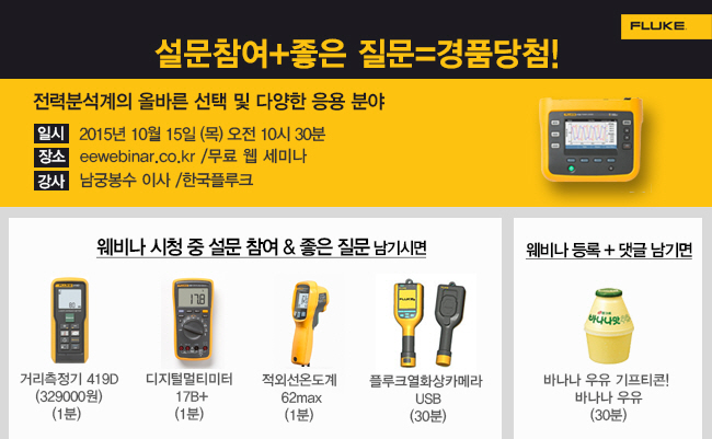 한국 FLUKE의 세미나에 참석 가능 여부는 모르겠으나 항상 Mail로 다양한 정보 공유를 해 주신데 대하여 깊은 감사 드립니다.새로 출시된 전력분석계로 산업 현장에 유용하게 적용 되었으면 하는 바램입니다.수고하세요