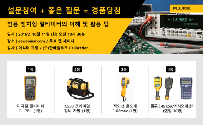 이번 플루크 웹세미나에서는 벤치형 멀티미터를 이용하여 연구개발 및 테스트 업무에 실질적인 도움이 될 수 있는 여러 가지 기능들을 소개해 드리고자 합니다. 범용적으로 많이 사용되고 있는 벤치형 멀티미터는 전압, 전류, 저항 등의 다양한 전기적인 파라미터를 측정 할 수 있는 장비로 연구개발용 뿐만 아니라 제조 환경에서도 널리 사용이 되고 있는 장비 입니다. 한국 플루크 에서는 고가의 장비가 없어도 범용 벤치형 멀티미터 만을 이용하여 마이크로암페어 범위와 나노암페어 단위 분해능으로 미세전류를 손쉽고 정확하게 측정할 수 있습니다. 이에 이번 웹세미나에서는 플루크 벤치형 멀티미터를 사용하여 측정 데이터의 로깅 방법 및 관리, 리미트 비교 기능, 2선식 4선식의 저항측정 방식에 대해서 알아볼 예정입니다. 이와 더불어 기본적인 멀티미터 사양의 이해와 종합적인 활용 방식을 제시해 드리도록 하겠습니다.