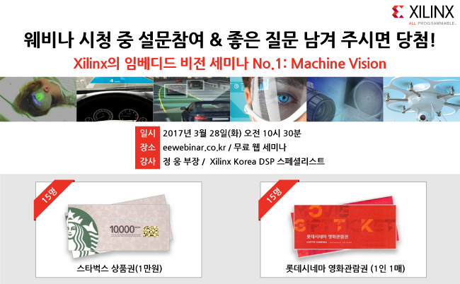 지금 등록 하시면 자일링스(Xilinx) 솔루션을 이용하여 임베디드 비전 디자인을 차별화 하실 수 있는 방법에 대해 알아 보실 수 있습니다.