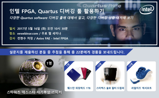 - Intel FPGA의 design software인 Quartus Prime에 포함된 다양한 debugging tooll 세미나 기대하고 있습니다