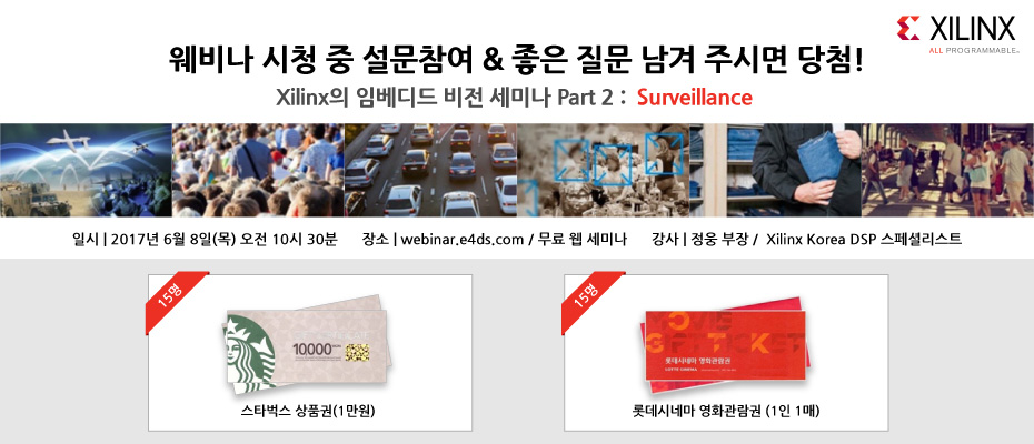 지난 3월 28일에 있었던 임베디드 비전 세미나 Part 1. Machine Vision 에 이어, 오는 6월 8일 임베디드 비전 세미나의 2번째 순서로 surveillance, 즉 보안용 영상 처리를 주제로 웹세미나를 진행하고자 합니다.