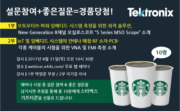 본 세션에서는 앞에서 열거한 다양한 테스트의 설명 및 텍트로닉스가 최근 출시한 PC형 VNA그리고 EMI pre-compliance를 지원하는 스페트럼 분석기 등을 이용한 측정에 대해 심도 있게 설명할 예정입니다.