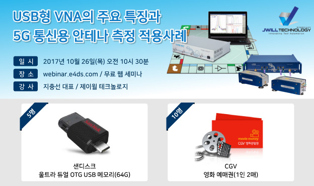 또, CMT사의 USB형 VNA를 이용하여 5G 통신기술을 기반으로한 사물인터넷(IoT) 혹은 밀리미터파용 안테나등에 적용하는 응용 사례들을 소개해 드릴 예정이니 많은 참석 부탁 드립니다.