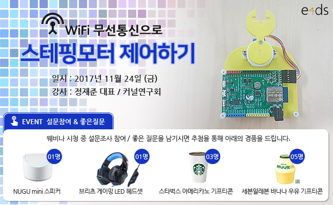 WiFi 무선통신, 스테핑모터제어, 각종센서 및 다양한 장치들을 연결이 가능하며