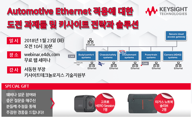 따라서 본 주제에서는 2014년 발표로 잘 알려져 있던 BroadR-Reach와 유사하며, 전기·전자 기술자 협회(IEEE)에서 발표한 Automotive Ethernet(IEEE 802.3bw 100BASE-T1 & IEEE 802.3bp 1000BASE-T1) 신호전송기술에 대해 소개해 드릴 예정이며, Automotive Ethernet 연구/개발/검증에 필요한 키사이트 측정/평가솔루션들을 소개해 드립니다.
