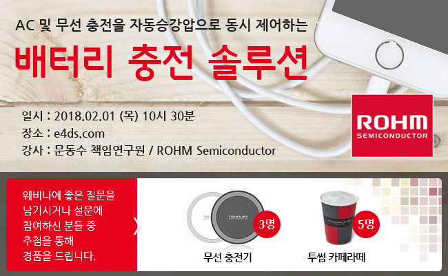 이번 세미나에서는 이러한 2 계통 충전에 대한 환경요구를 충족하기 위한 배터리 충전 IC의 소개와 함께, 실제 엔지니어에게 필요로하는 내부 설계에 관한 설명과, 이를 위한 범용키트를 자세하게 소개드립니다.