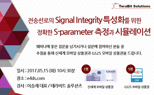 그런데, 측정이나 시뮬레이션 결과로 얻은 S-parameter에는 오차와 오류가 있을 수 있어서 정확한 전송특성을 파악하기 어려운 경우가 많이 있습니다. 따라서 본 세미나는 S-parameter 측정과 PCB trace 시뮬레이션에 대해 자세히 살펴봅니다.