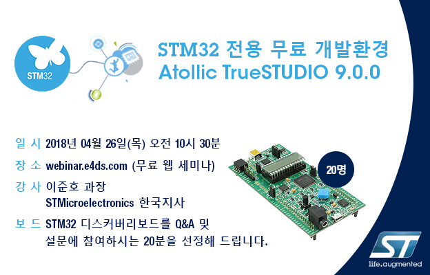 2017년 12월 ST는 통합개발환경 전문 회사인 Atollic 을 인수, 2018년 1월 ‘TrueSTUDIO for STM32 9.0.0’을 출시하였습니다. 기존의 Lite, Pro 버전 구분 없이 모든 기능들을 하나에 담았으며, 라이선스 비용 없이 무료입니다. TrueSTUDIO의 강력하고 편리한 개발환경을 지금, 무료로 이용해 보세요!