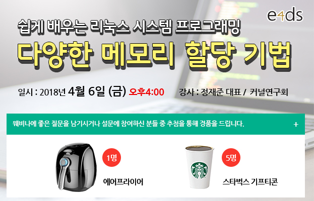 이번 웨비나에서는 리눅스 시스템 프로그래밍의 메모리에 대해 알려드립니다.
