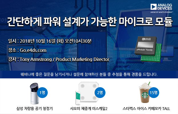 이번 웨비나에서는 일반 산업용, 통신용, 의료용, 자동차 기기 등 다양한 제품군에 적용할 수 있는 매우 쉽게 설계가 가능한 파워 제품인