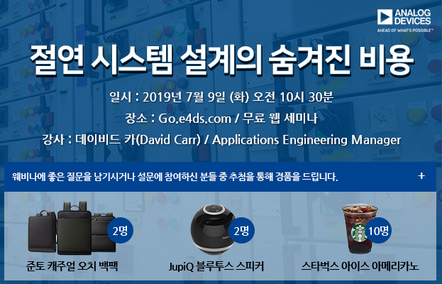 본 웨비나의 발표자 David Carr씨는 아나로그 디바이스의 Isolation interface 제품군 application manager로 재직중이며, High speed analog 와 mixed signal 분야의 전문가입니다.