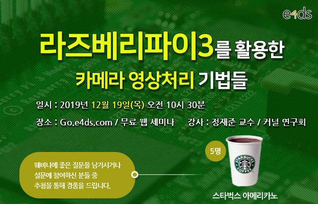 이번 웨비나에서는 실무적으로 "라즈베리파이 카메라를 활용한 영상처리"에 대해서 공유하는 시간을 마련했습니다.
