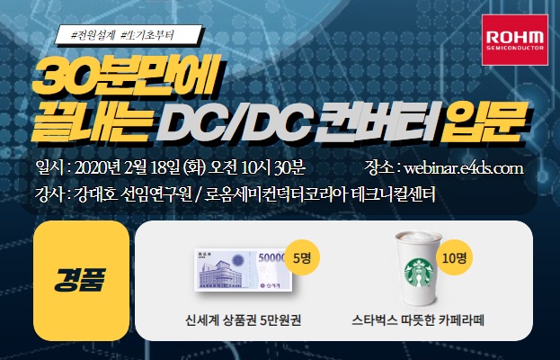 이번 웨비나에서는 [30분만에 끝내는 DC/DC 컨버터 입문]이라는 주제로, 레귤레이터 관련 동작 원리 등, DC/DC 컨버터의 기초에 대해 소개해 드리겠습니다.