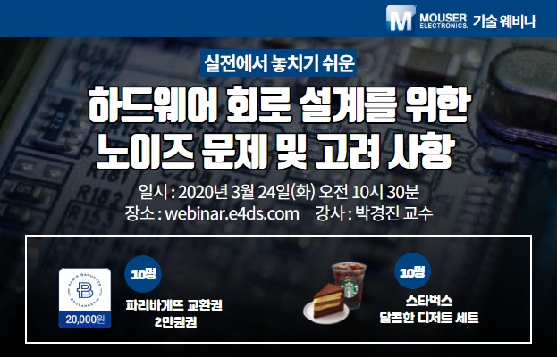 마우저 코리아에서는 회로 설계 문제로 고민하는 엔지니어들을 돕기 위해 정기적으로 온/오프라인 세미나를 진행하고 있으며, 이번 강의에서는 하드웨어 회로 설계 시에 발생할 수 있는 노이즈 문제에 대하여 어떻게 접근해야 할 것인지에 대해 다뤄보겠습니다.