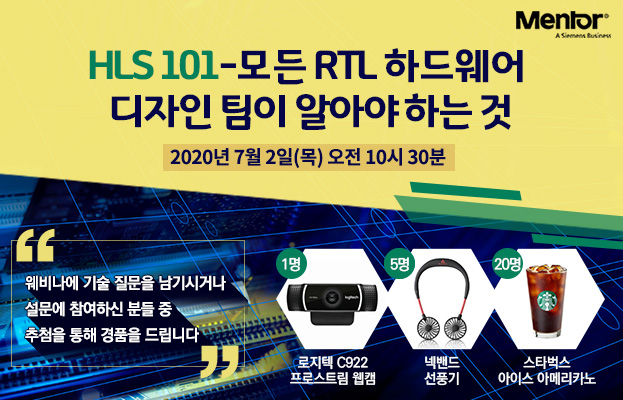 HLS분야에서 선두를 달리고 있는 저희 Mentor 지멘스 비즈니스의 Catapult 솔루션과 함께하는 웨비나에 참석하시어 유익한 시간 되시기를 바라겠습니다.