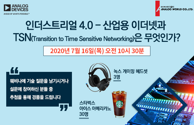 이번에 소개할 웨비나는 industrial Ethernet과 TSN이라고 불리우는 Time Sensitive Networking에 관련된 내용입니다.