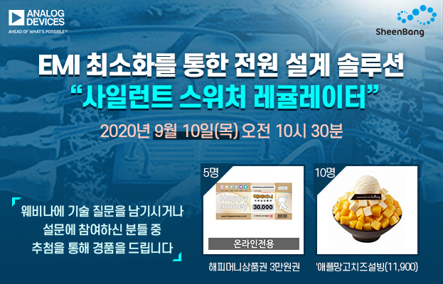 2MHz 이상의 높은 스위칭에서 트레이드오프 없이 고효율과 낮은 EMI를 구현할 수 있는 사일런트 스위처(Silent Switcher) 용어와 기술, 사일런트 스위처가 어떤 방식으로 구성되어 있으며, 어떻게 발전되었는지, 그리고 EMI 문제를 해결하는 방법 등을 이번 웨비나를 통해 자세히 설명드리고자 합니다.